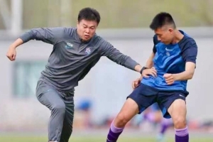 顾颖表示:“这是2023年4月,当时的津门虎一线队教练组,和球队最先组建的U17梯队踢指导赛的一幕——李帅琪防守于指导。(注:标题图)