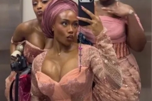 体育资讯3月14日讯 《太阳报》报道,萨卡的女友托拉米·本森近日在一场婚礼上以一袭低胸礼服惊艳亮相。