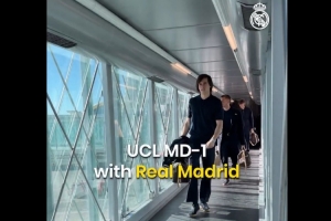 皇马官推晒出了球队在曼彻斯特第一天的视频,全队在西班牙当地时间10点20出发,历经三小时飞行后抵达曼彻斯特。