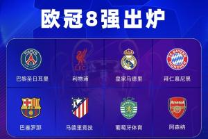 欧冠8强队伍:巴黎圣日耳曼、利物浦、皇家马德里、拜仁慕尼黑、巴塞罗那、马德里竞技、葡萄牙体育、阿森纳