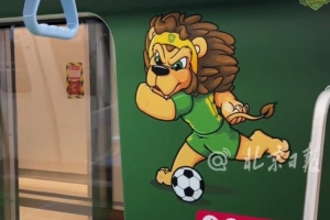 除主题车站外,北京地铁还在3号线打造了一列国安球员主题列车。车厢以绿色为主色调,车顶装饰有国安队徽,脚下的地面也变成了绿茵场,车厢内随处可见国安球员的头像和球队吉祥物“京狮”。此外,座椅还特别印制了国安球员的球衣号码,乘客可以对照号码,寻找自己心仪球员的“专属座位”。