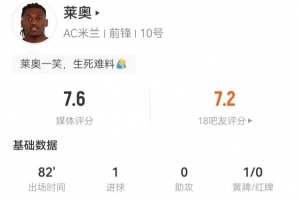 体育资讯2月19日讯 米兰在本轮意甲对阵科莫,莱奥本场数据如下: