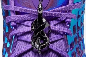 鞋带处配有一个黑曼巴配饰,同时缠绕的形态则呈现一个数字8的形态。